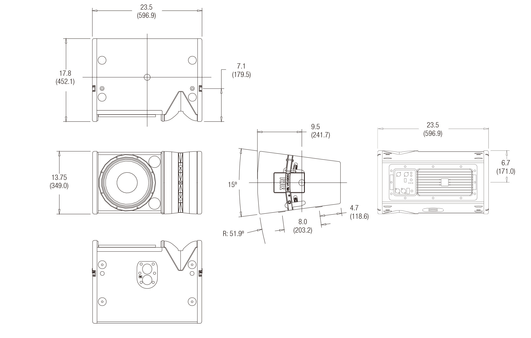 ●Integrated rigging hardware for easy attachment of enclosures and optional array frames.