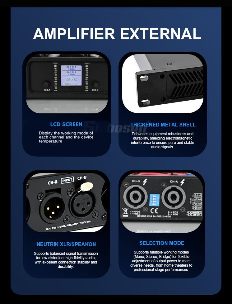 Sinbosen digital 2-channel 4200W home theater sound system power amplifier Silicon carbide